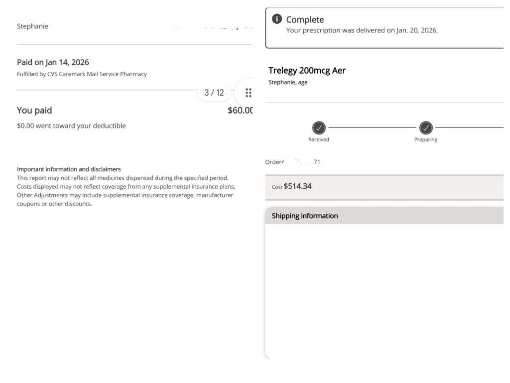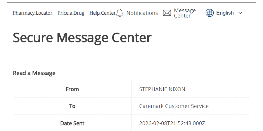 Unfortunately, we had already paid for the medications. Although the error was corrected in the “Carefirst” and Caremark.com com systems as of February 2, 2026 (excepting my order receipts), we did not receive a refund or even notification that a refund was due.