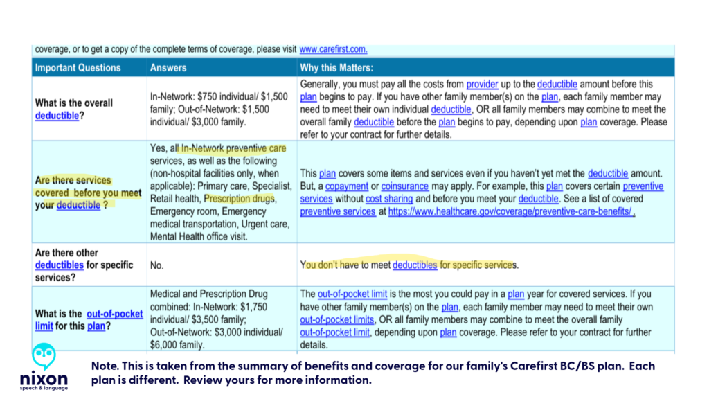 Disclaimer: I am a Speech-Language Pathologist and educational consultant, not an insurance broker or attorney. This post shares my personal experience and is not intended as legal or financial advice. Always consult your specific plan documents for coverage details.