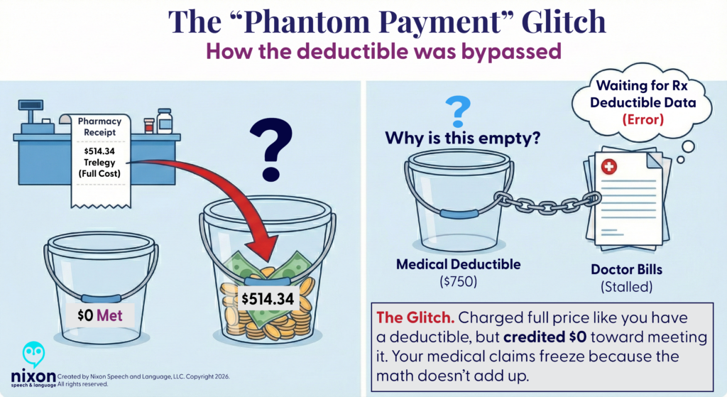 The “Phantom Payment”: Check your insurance portal after a big purchase. If you paid $500 at the pharmacy, your “Deductible Remaining” should drop by $500. If the money disappears into the ether (or only hits your “Out-of-Pocket Max”), the system is miscoded.