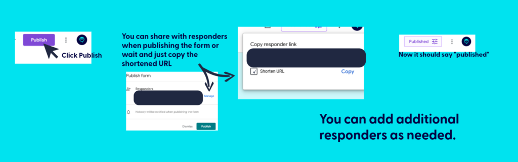 Publish the form. Be sure to copy the link after publishing for your use.